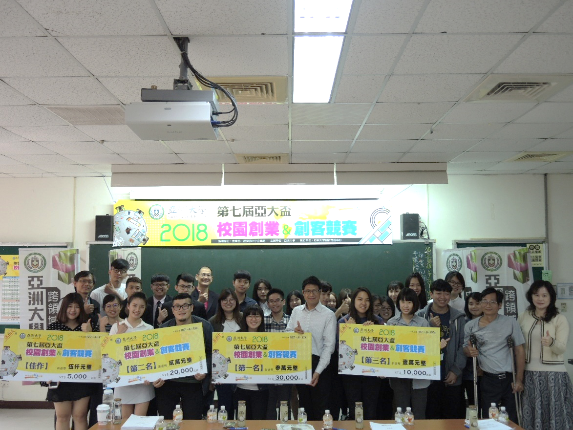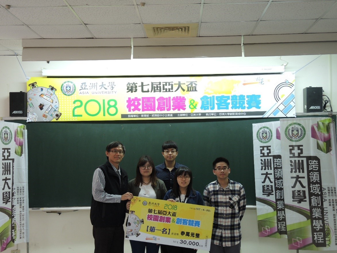图说:亚大第七届校内创业竞赛,生科系系同学成立的「拜尔基特」,获评为第1名,获得奖金3万元。