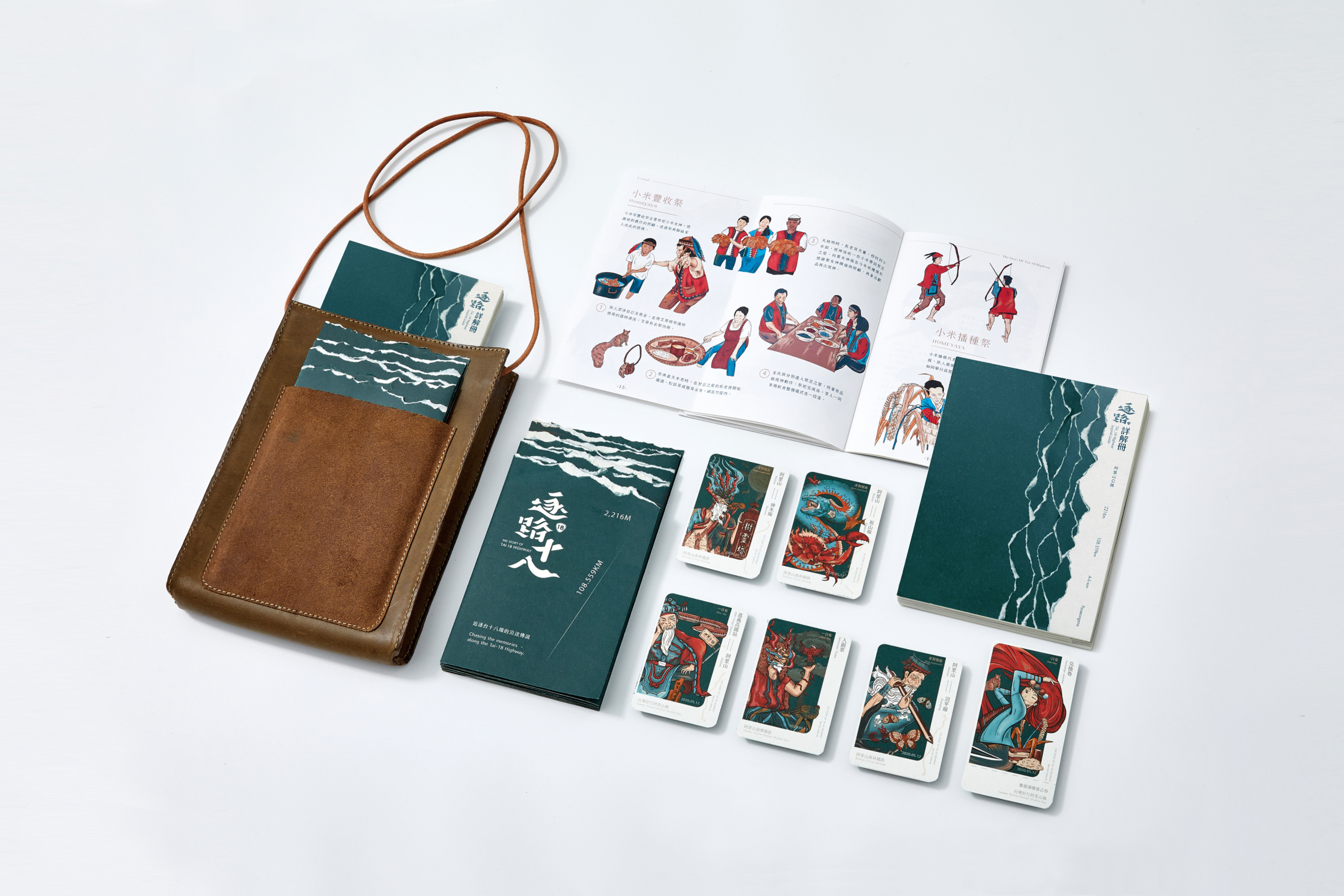 陳洧瀠等同學說,他們以橫跨百年歷史的阿里山傳說當切入點,結合台18公路沿線生態、人文及歷史,繪製成視覺插畫,應用於旅遊票冊、宣傳海報以及主視覺,向行經台18線旅遊的遊客,傳達這條公路人與土地間的故事傳說。 奪獎的6位同學挑選六則當地傳說故事為主軸,海報視覺上以各故事中的主角為主,當地人文、生態為輔,呈現出六張系列海報,以插畫的形式將每個故事做畫面上的串聯,描繪出屬於台18線,較鮮為人知有趣的經典事物。還有旅遊套票組,包含摺頁票冊、詳解手冊及旅遊肩包,設計上結合傳說故事的主題視覺,拿起票卡的就可以知道人在哪裡,對應的傳說故事,附近有什麼景點與祭典。
