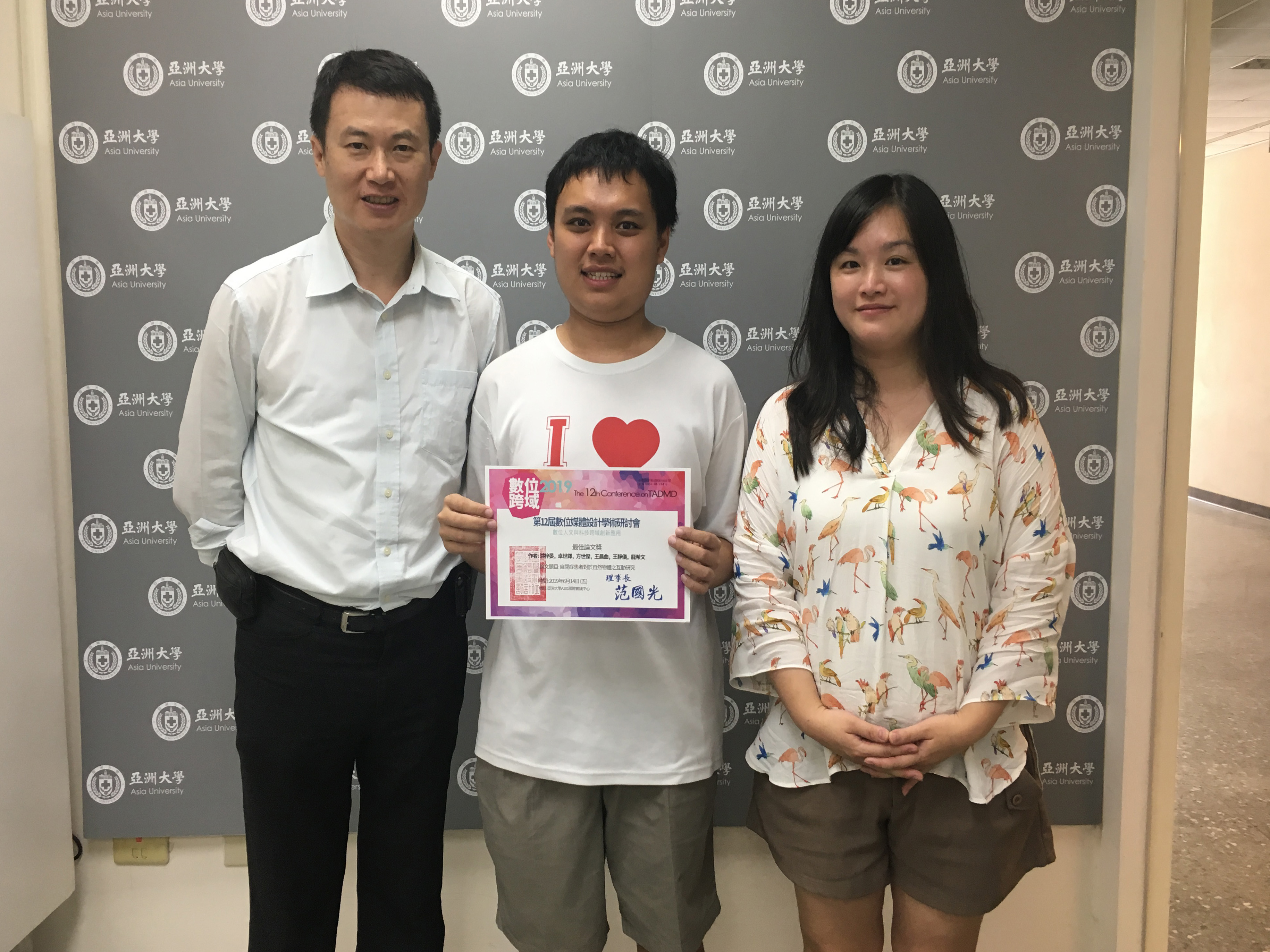 亞洲大學(Asia University, Taiwan)創意商品設計系洪梓晏、卓世鐸、方世傑、王晨曲4位同學,以特殊族群的自閉症大專生為研究對象,探討利用自然物探討增進自閉症的社交能力研究,榮獲2019年第12屆數位媒體設計學術研討會「數位人文與科技跨域創新應用」最佳論文獎。