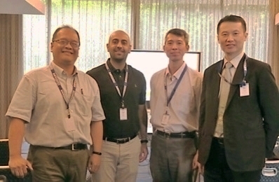 圖說:中國醫藥大學職業安全與衛生系羅宜文老師(左一)、貝魯特美國大學Dr. Saif K. Al-Qaisi(左二)、亞大蔡楨永博士生(右二)及商設系主任龍希文(右一)合影。 |